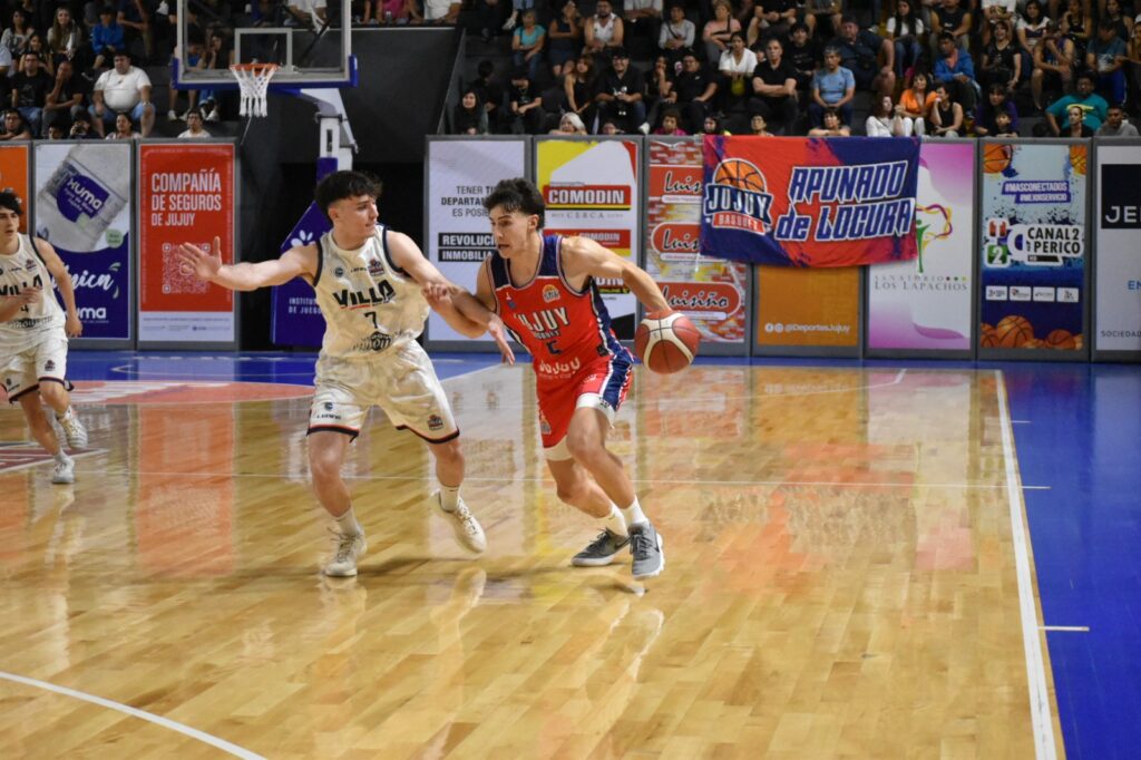 El primer cuarto estuvo marcado por el estilo agresivo, dinámico y moderno de Jujuy Básquet, la estadística habla más que el relato, el conjunto local convirtió cinco de 16 tiros desde la larga distancia. Mientras que Villa, con un juego más cauto, logró ponerse en ventaja por solo tres puntos. 20-23