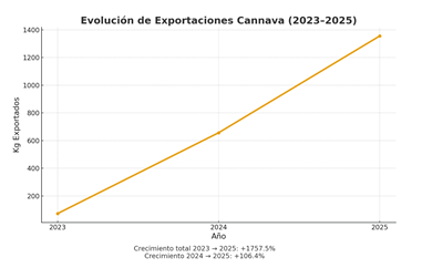 En estos últimos tres años (2023-2025), Cannava multiplicó por 16 sus exportaciones, pasando de 72 kg a más de 1.300 kg por campaña anual, esto gracias a contratos de exportación firmes y vigentes por cinco (5) años con empresas de Alemania, Portugal y Australia.